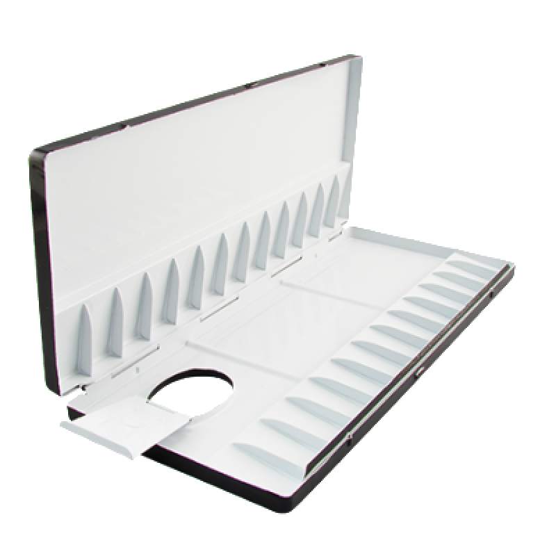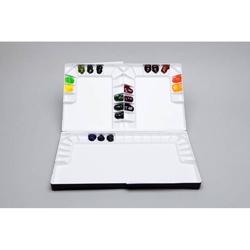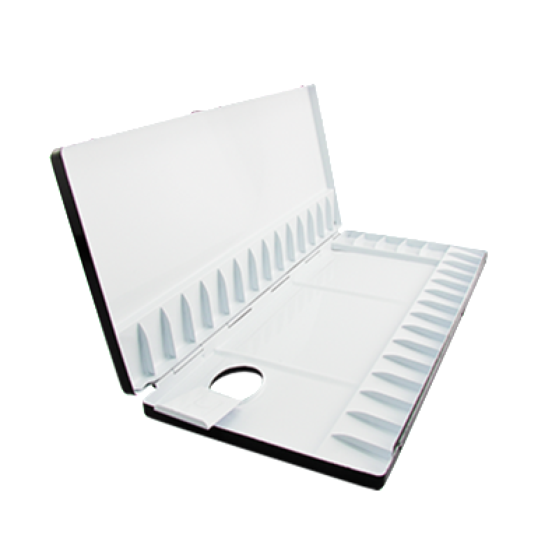 Watercolor palette with 55 total wells for watercolor studio usage