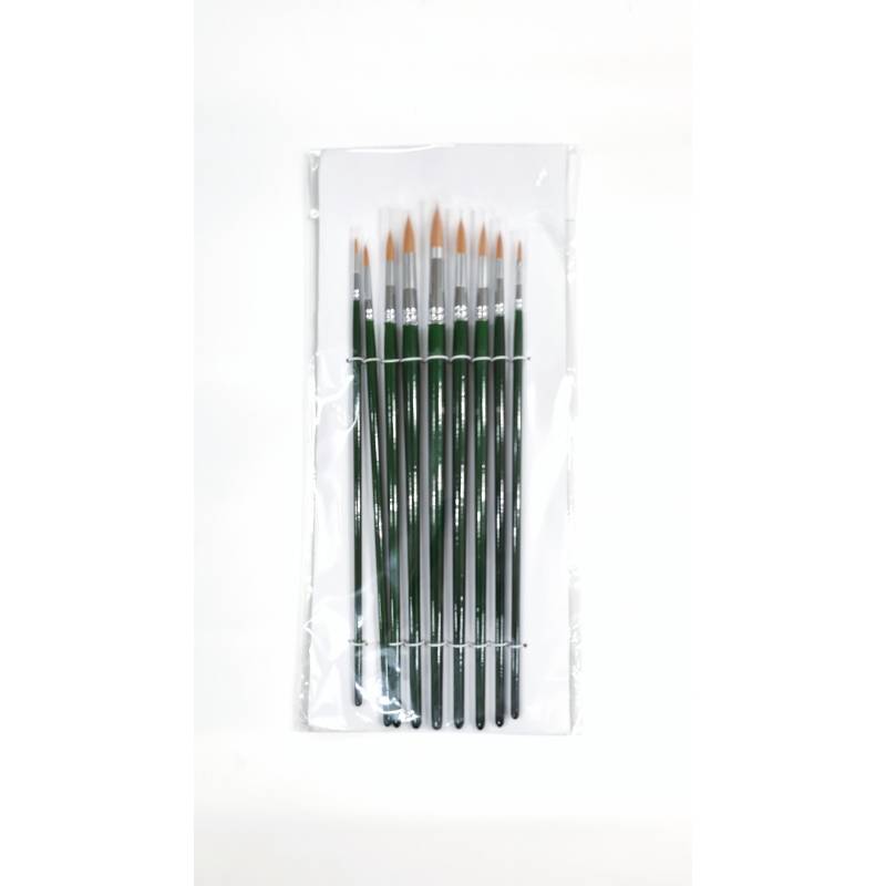 Long Handle Round Brush Set of 9 Golden Nylon