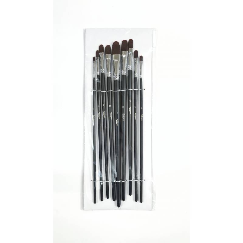 Girogione Synthetic Long Handle Filbert Brush Set (9 Brushes)