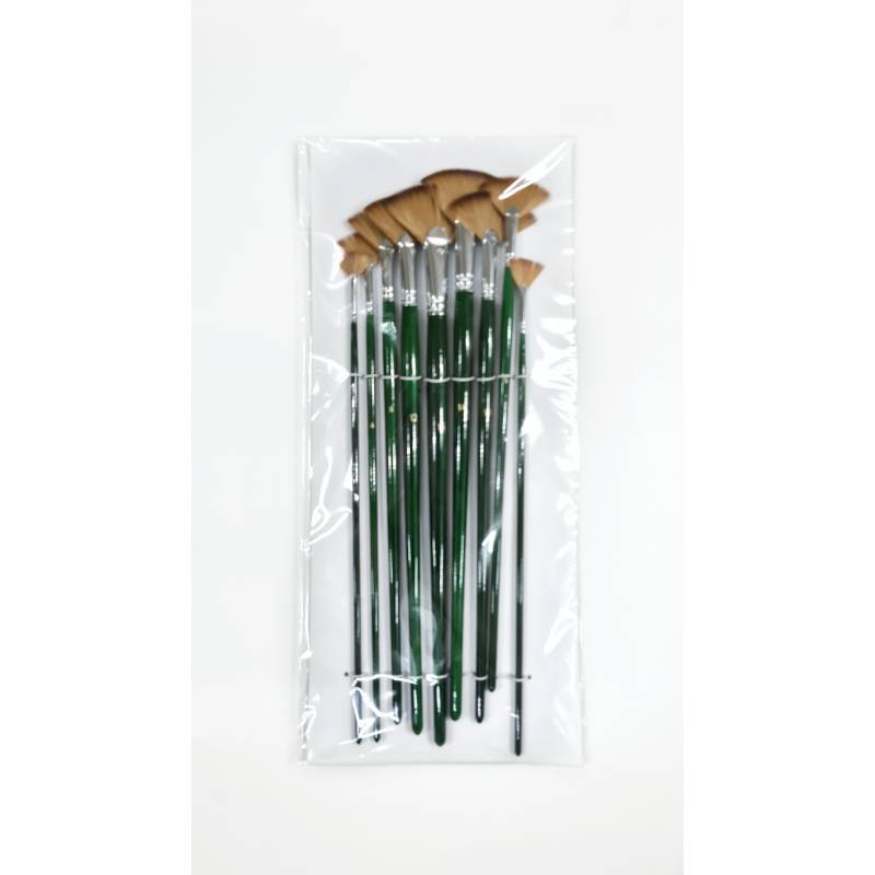 Long Handle Filbert Brush Set of 9 Brown Nylon